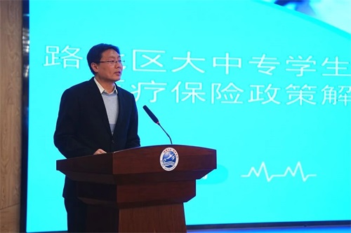 唐山市医疗保障局路北区分局局长颜景刚就学生参保工作作总结发言,从政策层面深刻阐释了学生参保的重要意义。他指出,大中专学生参保不仅是国家保障青年群体健康权益、守护青年成长的重要制度安排,更是织密扎牢社会保障体系、提升民生保障水平的关键一环。他呼吁广大同学充分认识医保权益的重要性,按时完成参保手续,切实将国家的政策保障转化为守护自身健康的“长效防护盾”。